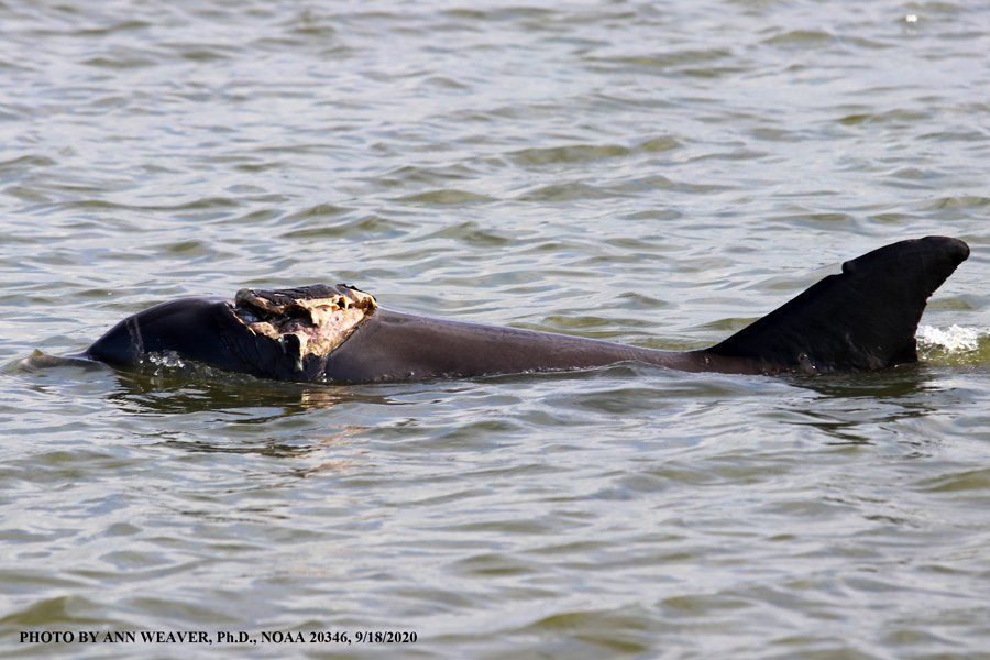 Picture Caption. Free-ranging bottlenose dolphin Queen P’s life is threatened by a brutal bite on the head from a large peevish shark.